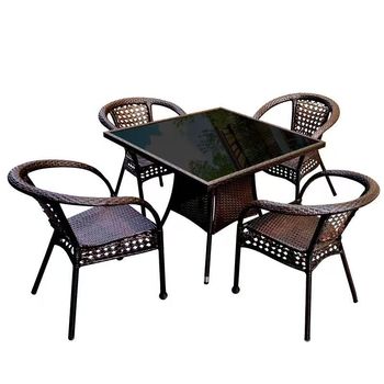 Sıcak satış Modern tasarım açık bahçe eğlence kol arkalığı PE Rattan Metal çerçeveli sandalye masa seti bahçe mobilyaları